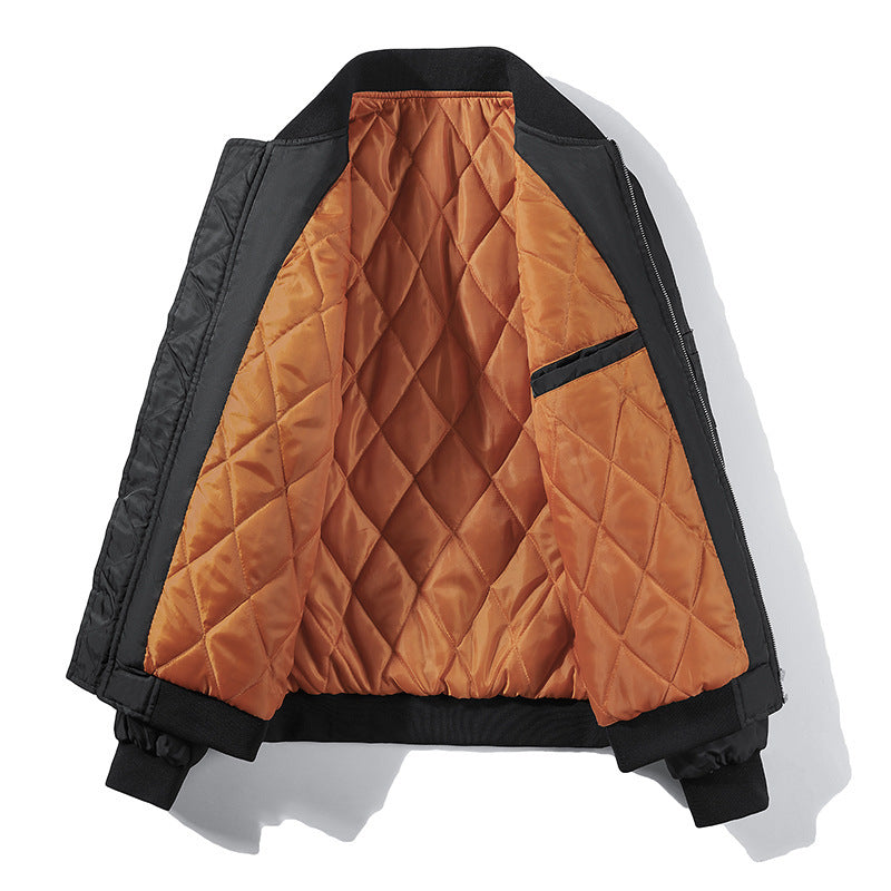 • Design Elements: Zippered Pockets, Ribbed Cuffs, Orange Lining