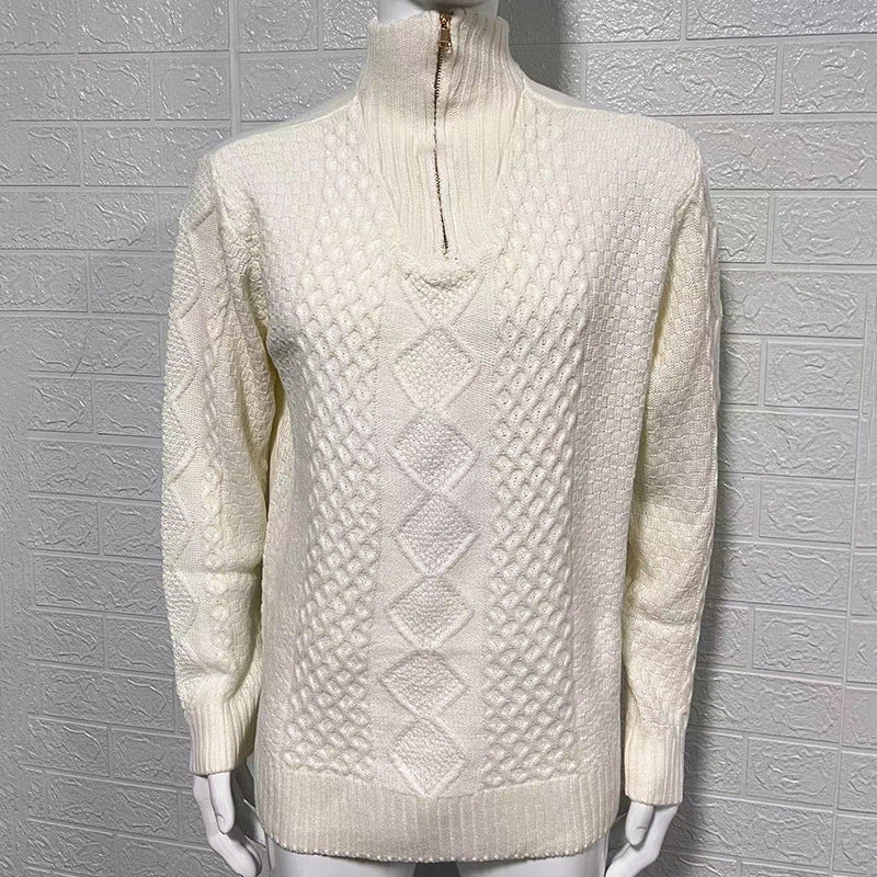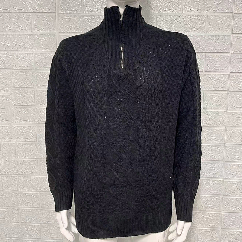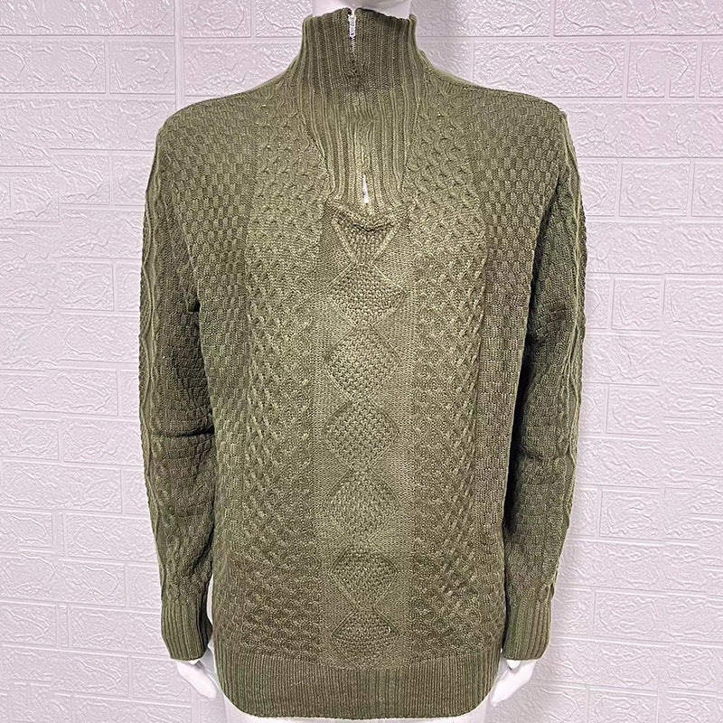 • Design Elements: Intricate cable knit patterns, ribbed cuffs and hem, half-zip closure