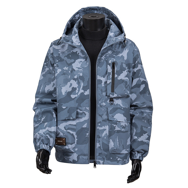 • Design Elements: Concealed zipper closure, adjustable hood drawstrings, camouflage pattern