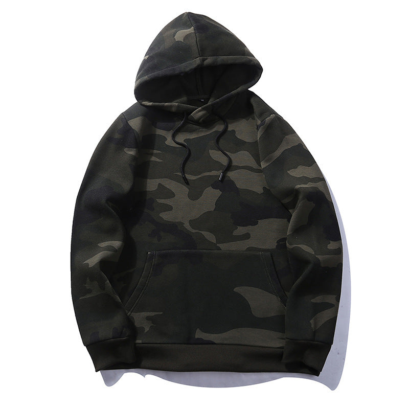 • Design Elements: Camouflage pattern, front pocket, adjustable drawstring hood