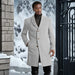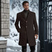 • Gold-tone buttons provide an elegant contrast against the black coat.