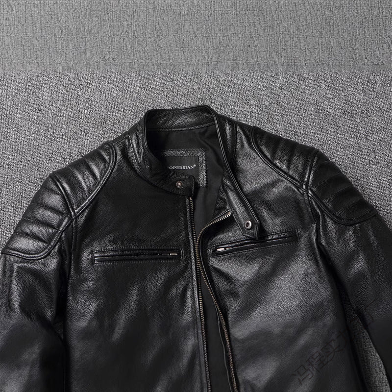 • Design Elements: Zippered pockets, padded shoulders, vintage-inspired stitching