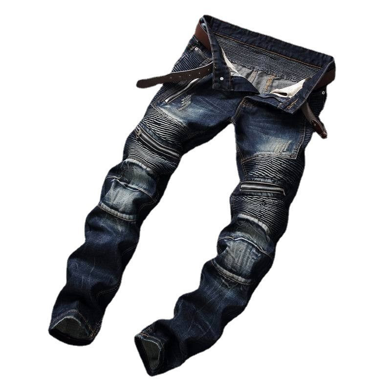 • Design Elements: Faded wash effect, zipper accents on the sides, slim fit design