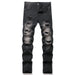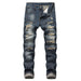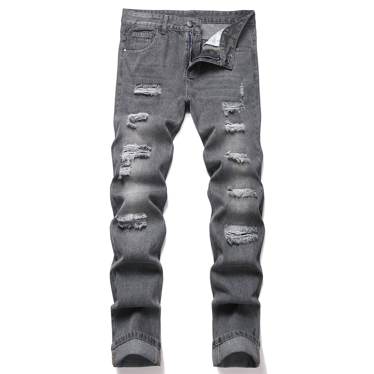• Design Elements: Multiple ripped details, frayed edges, classic five-pocket design