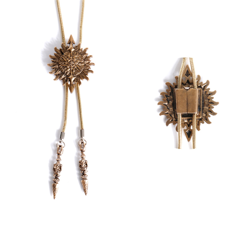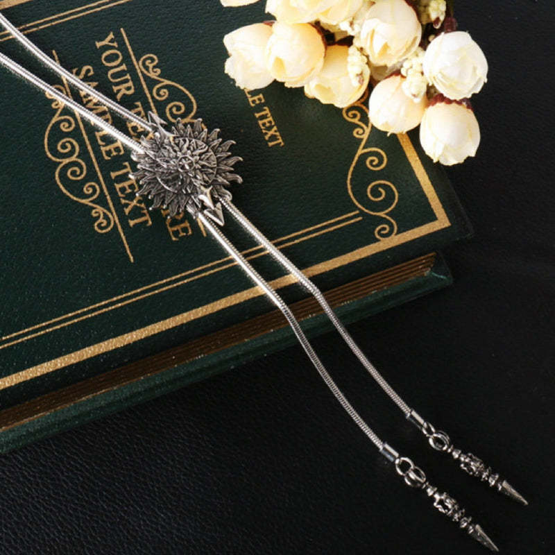 Material: Crafted from high-quality metal, this bolo tie features a durable chain that is both lightweight and sturdy, ensuring comfortable wear throughout the day. The shine of the metal adds a touch of sophistication.