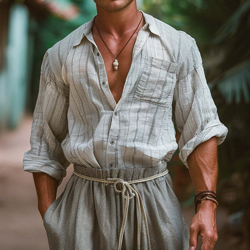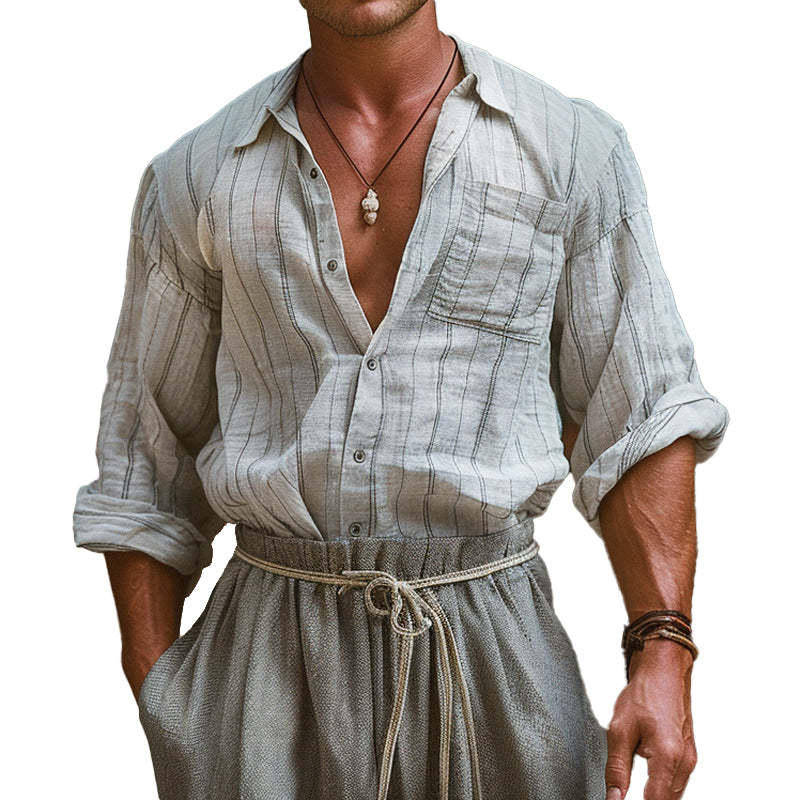 Description: This men's long sleeve shirt features a stylish striped print design, combining classic lines with a modern, breathable fabric. The stripes add a touch of sophistication and visual interest, making it perfect for both casual and semi-formal occasions. Whether you're dressing up for work or heading out for a relaxed day, this shirt offers timeless style with a contemporary twist.