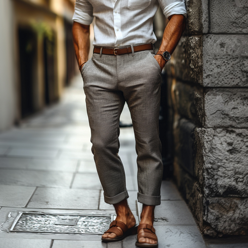The Men's Casual Comfortable Cotton Linen Slim Fit Suit Pants offer a perfect blend of sophistication and comfort , making them an essential wardrobe piece for both casual and semi-formal occasions. Crafted from a premium cotton-linen blend , these pants provide breathability, softness, and a lightweight feel , ensuring all-day comfort. With a modern slim-fit cut , they deliver a sleek, tailored look while maintaining ease of movement.