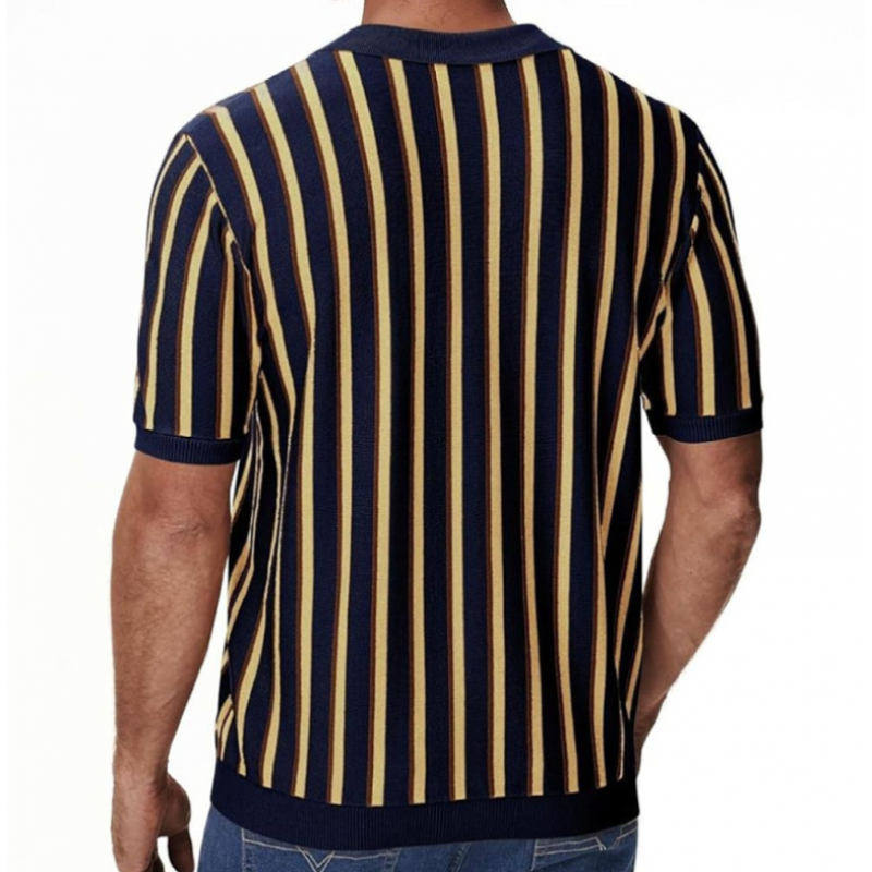 The Men's Casual Contrast Color Striped Lapel Knitted Loose Short-Sleeve Polo Shirt is a stylish and comfortable addition to any man's wardrobe. Featuring a vibrant striped pattern and a smart lapel, this polo shirt combines contemporary aesthetics with casual flair. Crafted from soft knitted fabric, it offers breathability and comfort, making it perfect for casual outings, weekend get-togethers, or relaxed gatherings.