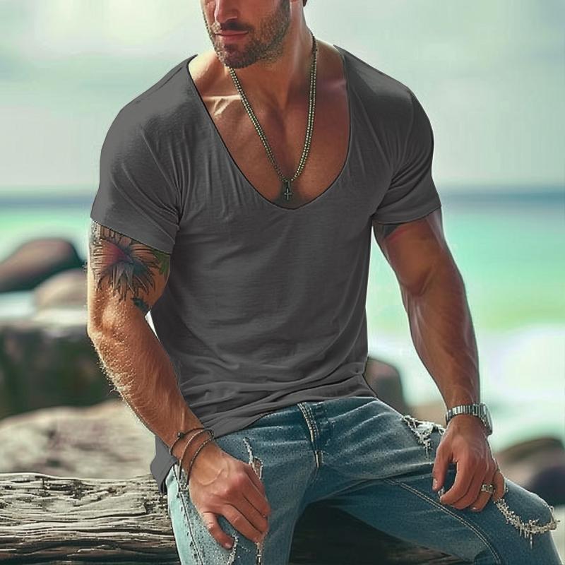 Elevate your casual wardrobe with our Men's Casual Cotton Blended U-neck Slim Fit Short-Sleeved T-shirt, where comfort meets effortless style. Whether you're relaxing at home or heading out, this T-shirt ensures you stay comfortable and look great.