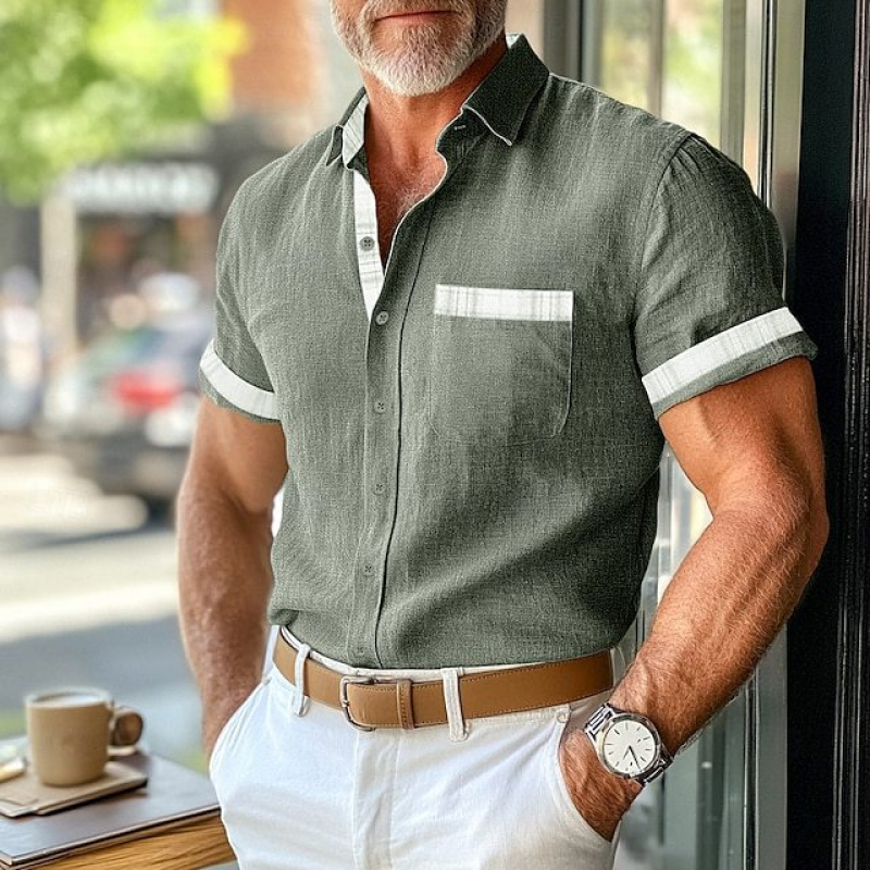 The Men's Casual Cotton Linen Plaid Patchwork Lapel Slim Short-Sleeved Shirt is the perfect blend of comfort and style, designed for the modern man who values versatility and sophistication. Crafted from a lightweight cotton-linen blend, this shirt is breathable and perfect for warm-weather wear. Featuring a unique plaid patchwork design and a chic lapel collar, it effortlessly elevates your casual wardrobe while providing all-day comfort.