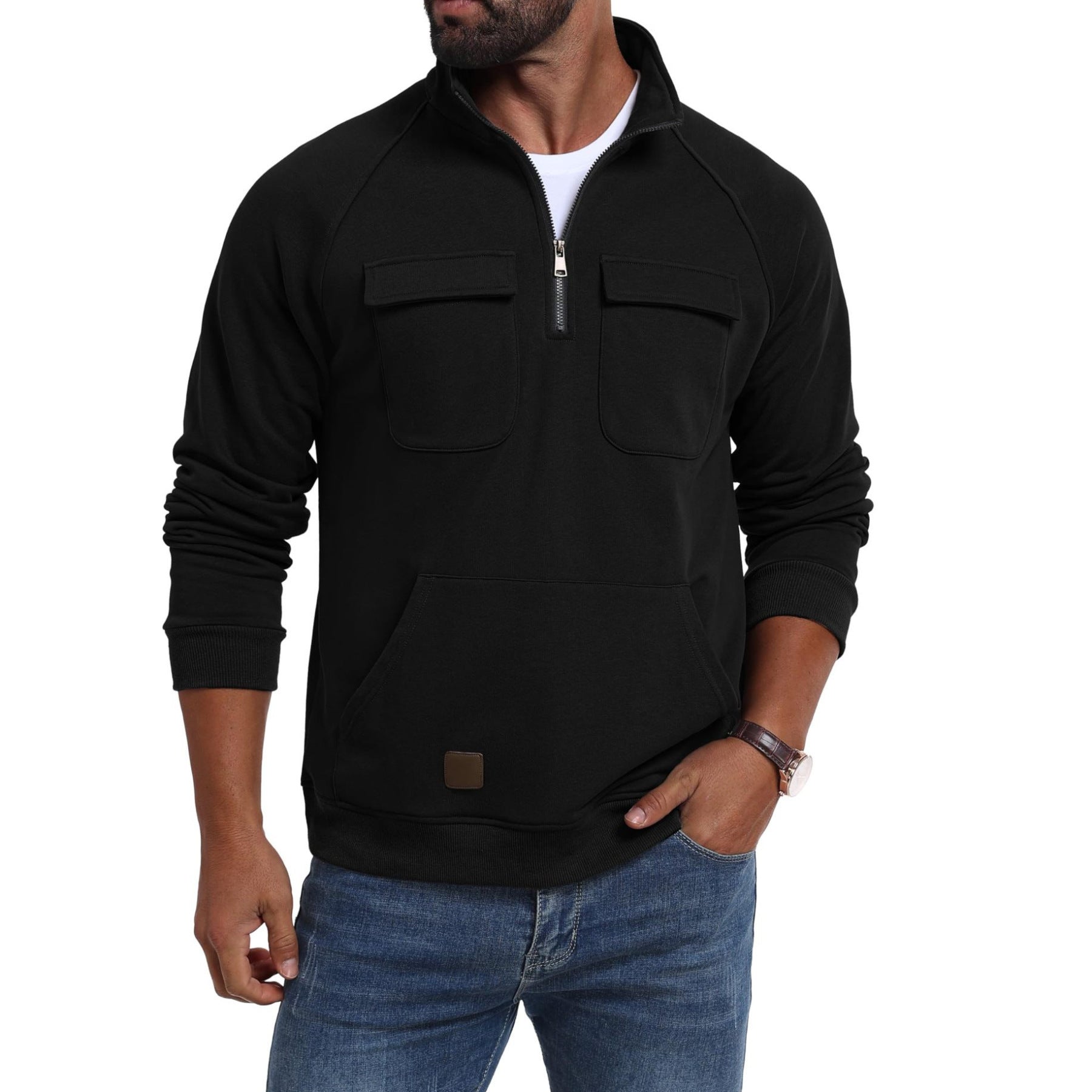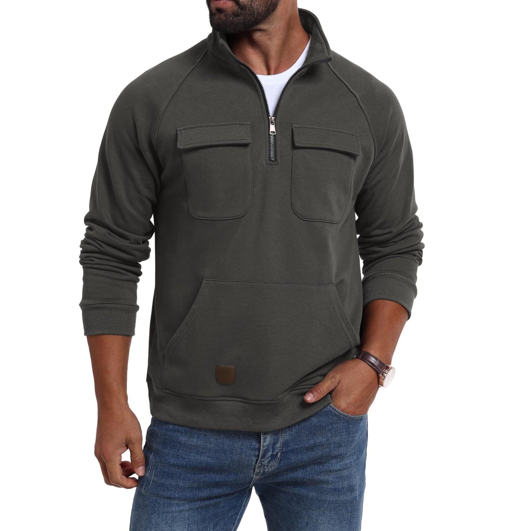 • Design Elements: Two chest pockets, half-zip closure, and a large front pocket