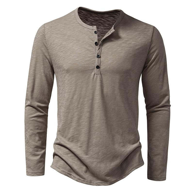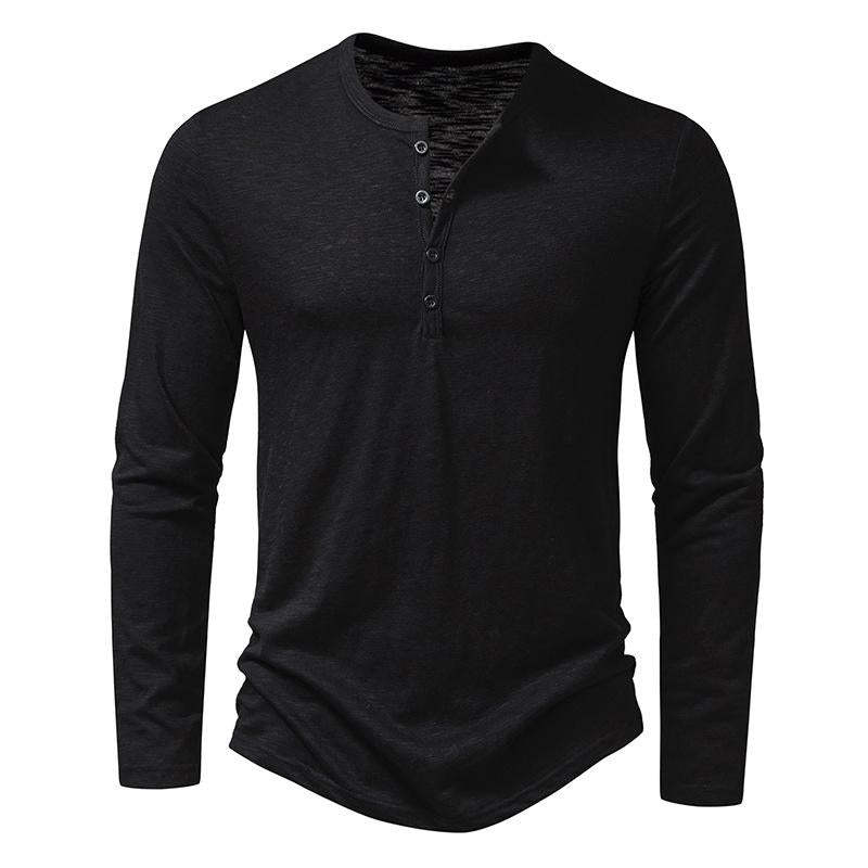 Elevate your casual wardrobe with our Men's Casual Henley Collar Solid Long Sleeve T-Shirt, a perfect blend of style and comfort.