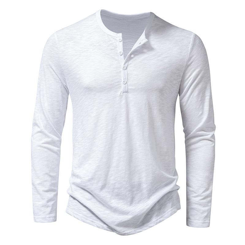 Collar Style: Henley collar with a button placket, adding a touch of sophistication to a classic design.