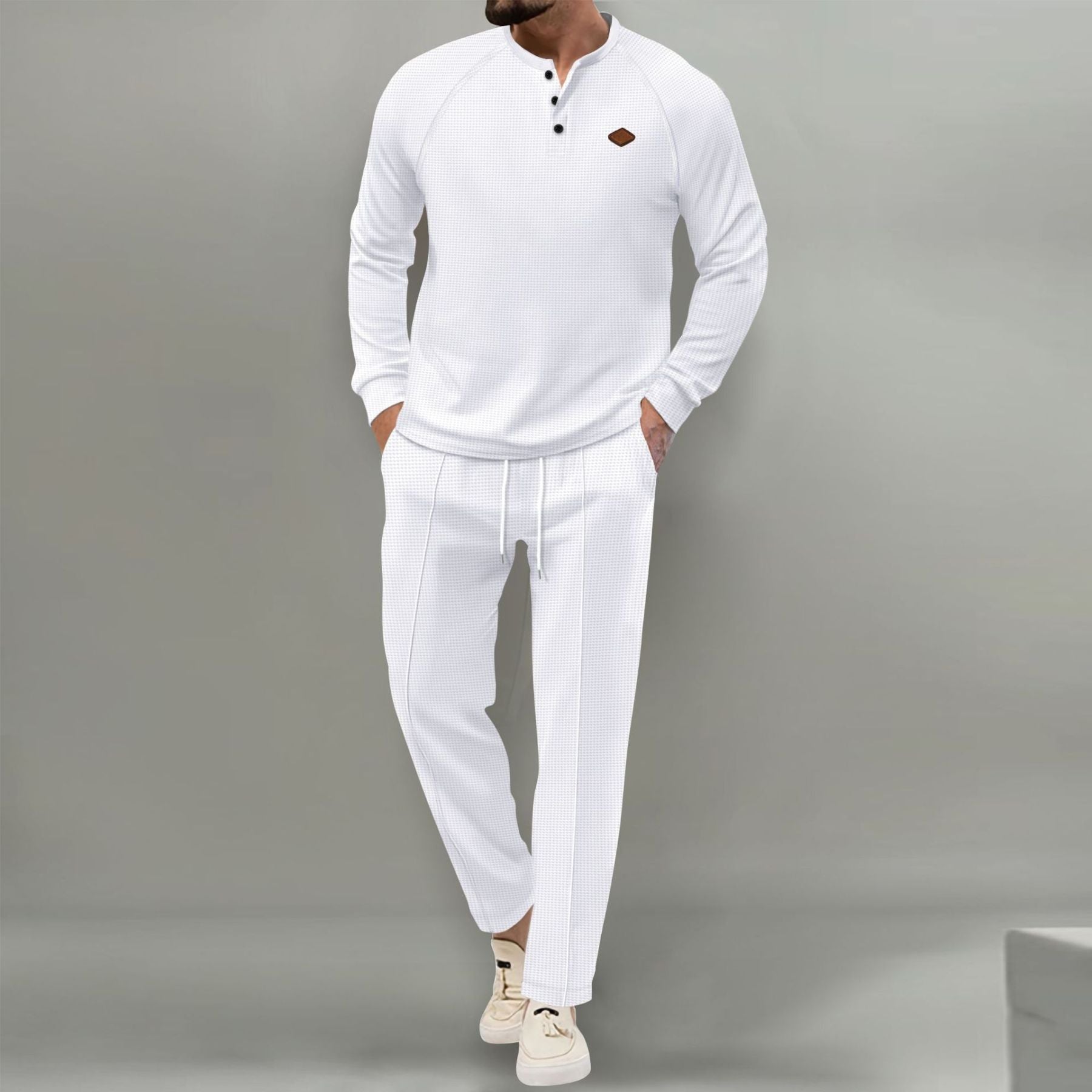 • Design Elements: Henley Neckline with Button Closure, Chest Pocket Detail, Matching Jogger Pants