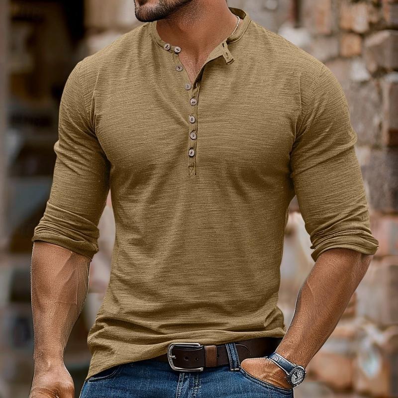 This Men's Casual Multi-Button Henley Collar Long Sleeve T-Shirt is a versatile, relaxed essential with a modern twist on a classic design. Ideal for layering or standalone wear, it's a stylish, comfortable addition to any casual wardrobe.