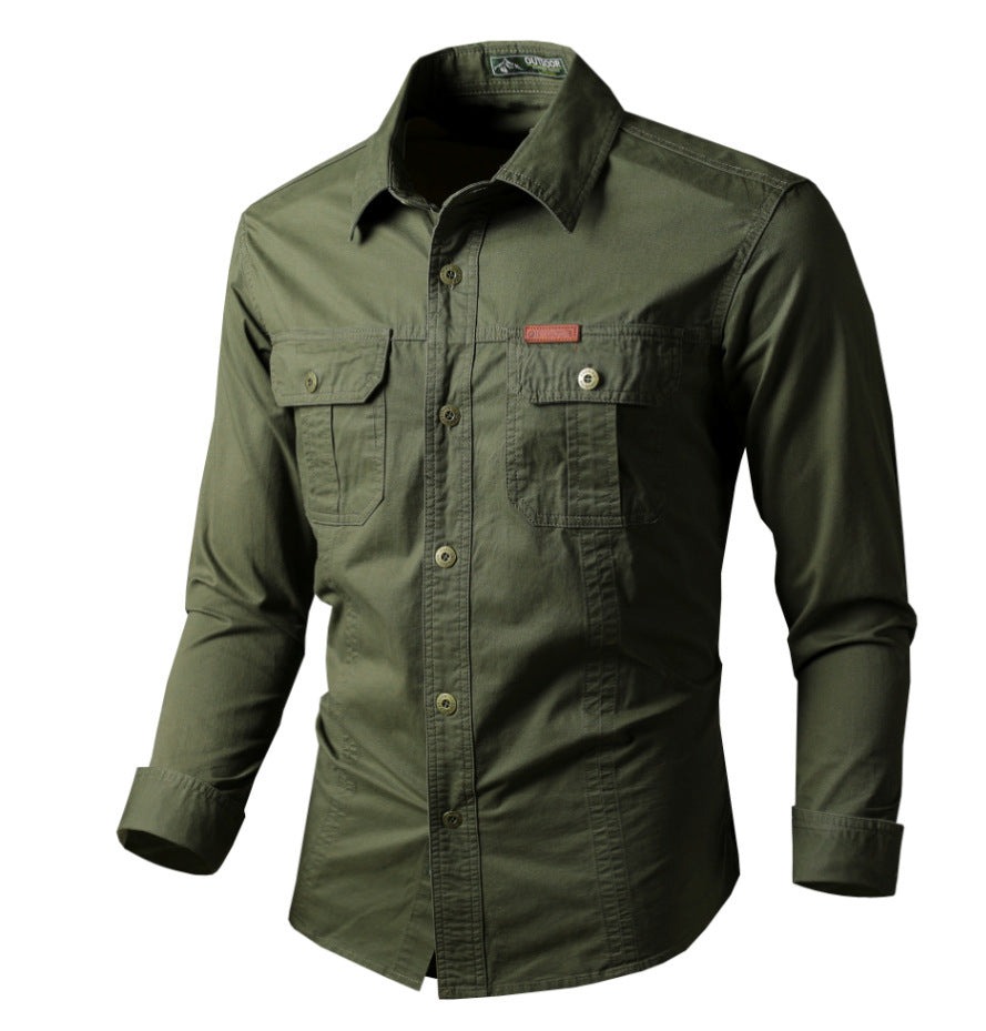 • Design Elements: Two Chest Flap Pockets, Button-Down Closure, Brand Patch Detail
