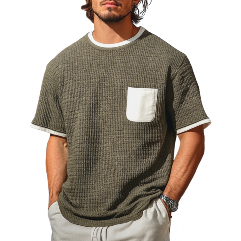 The Men's Casual Round Neck Colorblock Patchwork Loose Knitted Short Sleeve Sweater is a must-have for any man's wardrobe, merging comfort and style in one trendy package. With its soft fabric, eye-catching design, and relaxed fit, this sweater is perfect for casual outings or lounging at home. Embrace a laid-back yet fashionable aesthetic with this versatile piece that ensures you look great while staying comfortable!