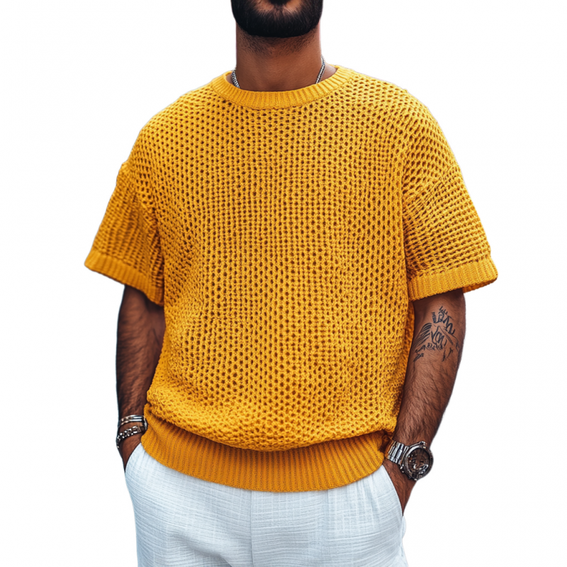 The Men's Casual Round Neck Soft Loose Knitted Short Sleeve Sweater is the perfect blend of comfort and relaxed style, designed for the modern man who values both functionality and fashion. This lightweight sweater offers a cozy feel with a loose-fit design, making it ideal for layering or wearing alone during casual outings. Crafted from a soft knitted fabric, it ensures optimal comfort, making it a staple piece for any casual wardrobe.