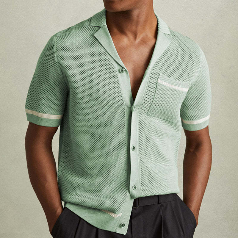 The Men's Casual Short Sleeve Knitted Shirt is an essential piece for any man's wardrobe, blending comfort and style effortlessly. Its versatile design ensures you can dress it up or down, making it suitable for various occasions. Add this stylish shirt to your collection and enjoy its effortless charm and undeniable appeal.