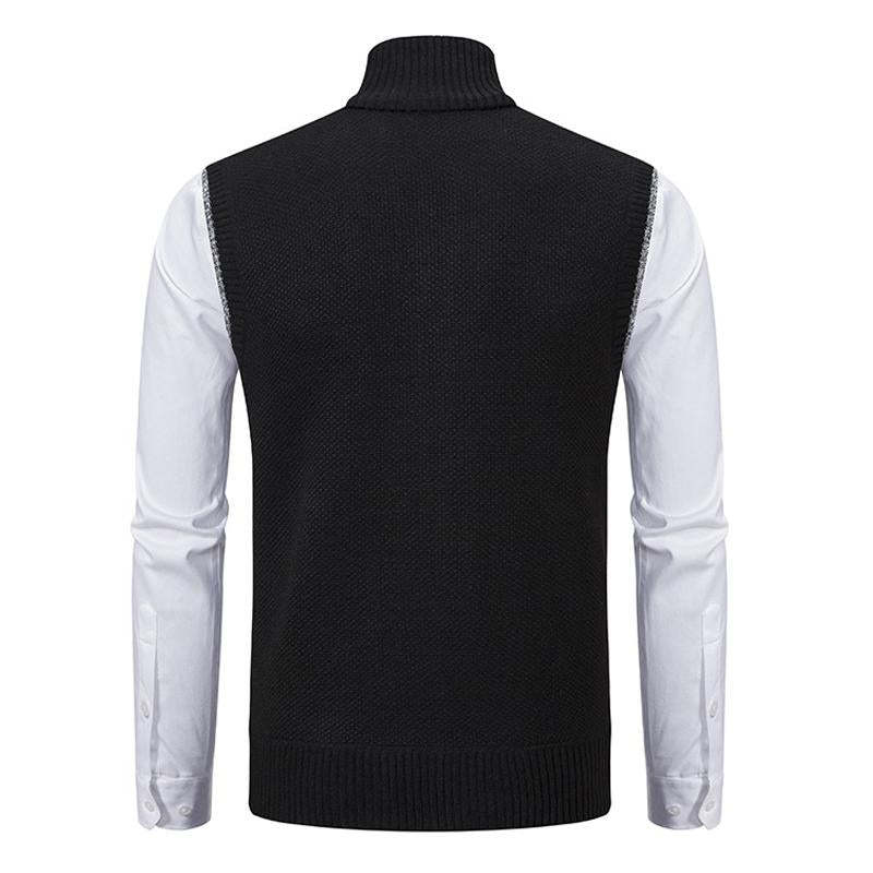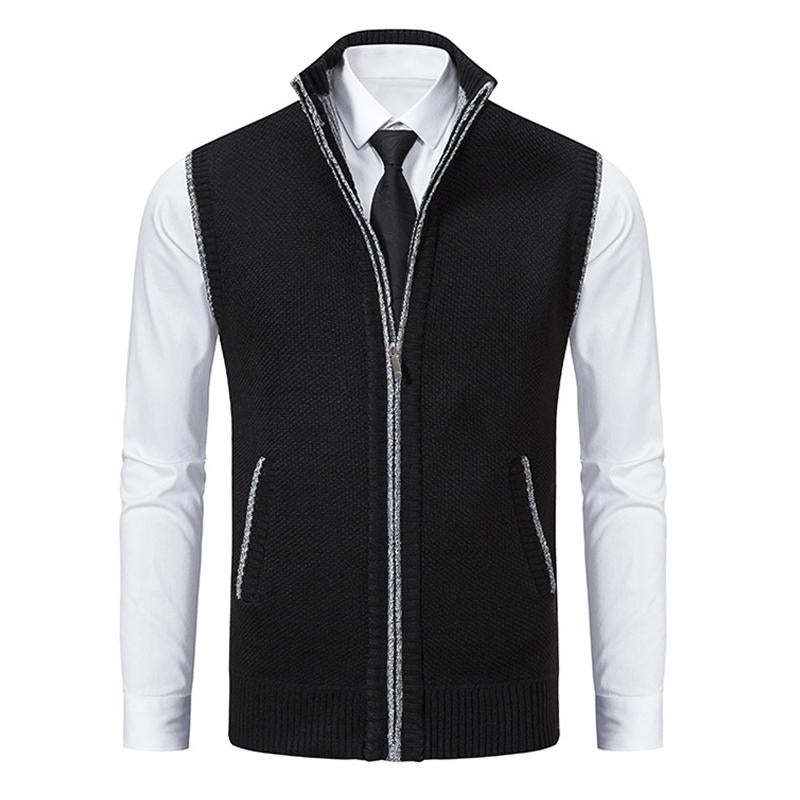 Introducing our Men's Casual Solid Color Stand Collar Sleeveless Knitted Vest – a versatile and stylish addition to your wardrobe, combining contemporary design with practicality.