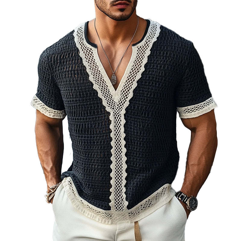 Product Name: Men's Casual Spliced Lace V-Neck Short Sleeve T-Shirt