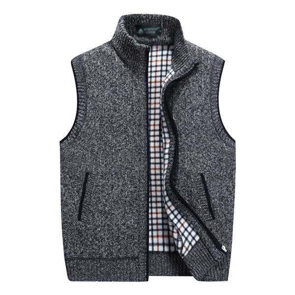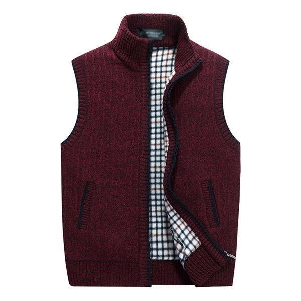 This men's stand-collar fleece knit vest is made of a blended fabric that is both durable and comfortable, providing warmth and comfort in the autumn and winter seasons. Its practical zip design makes it easy to put on and adjust.