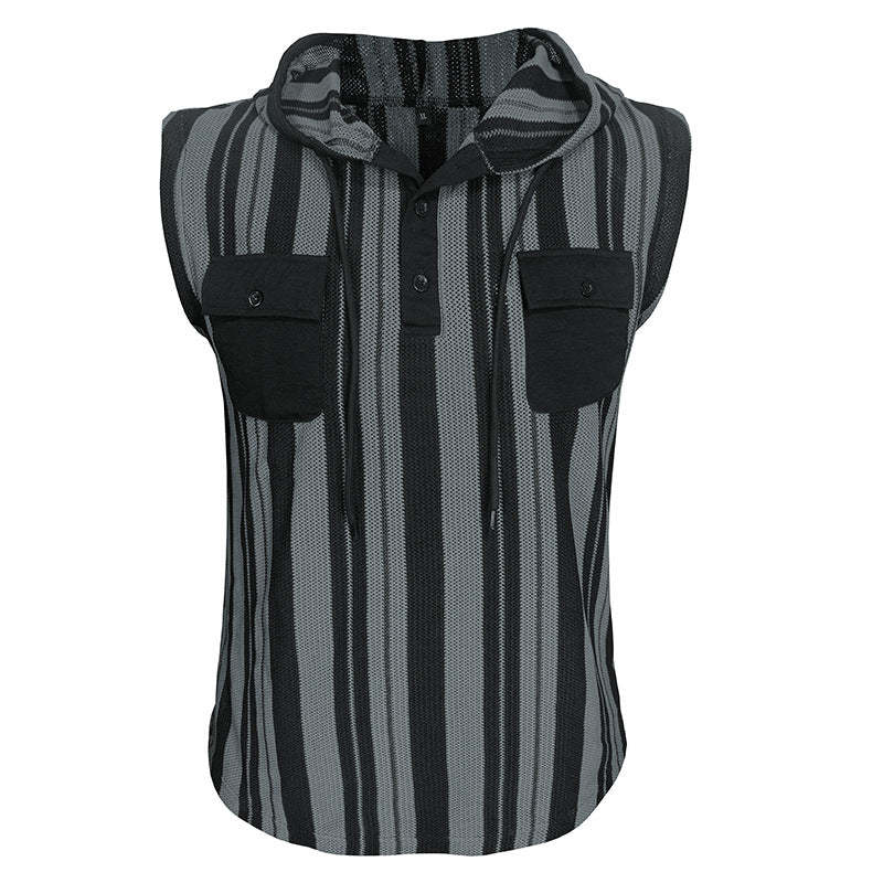 Product Name: Men's Casual Striped Sleeveless Hooded Tank Top
