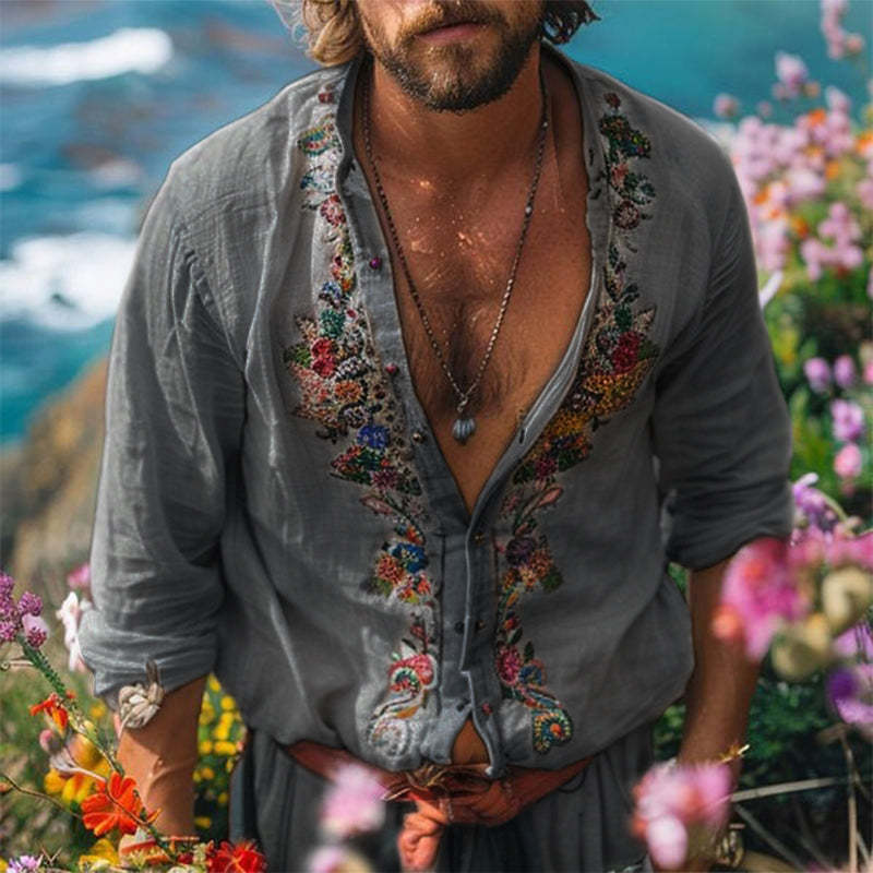 This collarless blended long-sleeved shirt is suitable for all seasons due to its unique advantages in design and fabric. In spring and autumn, it can be matched alone or with a light jacket; in the cold winter, it can be layered with a jacket as an inner layer. Even in summer, you can keep cool by rolling up your sleeves. Therefore, this shirt truly realizes the use value of all seasons and adds diversified choices to men's wardrobes.