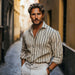 Product Name : Men's Classic Apricot Vertical Stripe Printed Crinkled Long Sleeve Shirt
