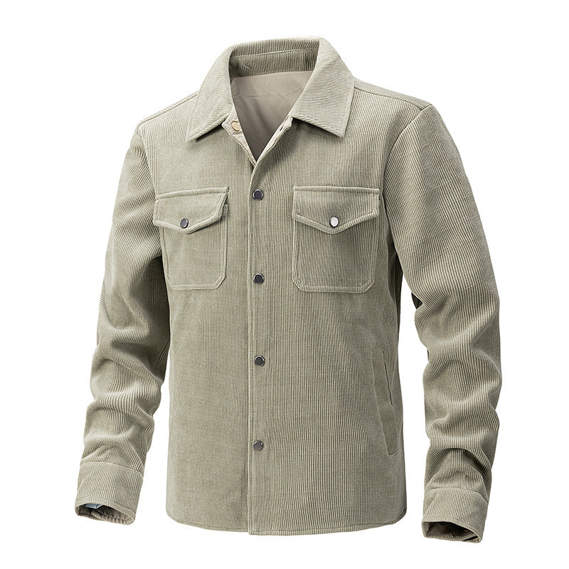 • Design Elements: Two front chest pockets with button flaps, button-down closure, classic collar design