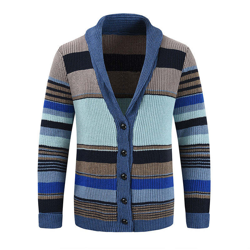 The Men's Colorblock Lapel Sweater Jacket is crafted from soft, lightweight knitted material, providing comfort and durability. Its long-lasting heat storage effectively retains body warmth, making it ideal for autumn, winter, and spring travel.
