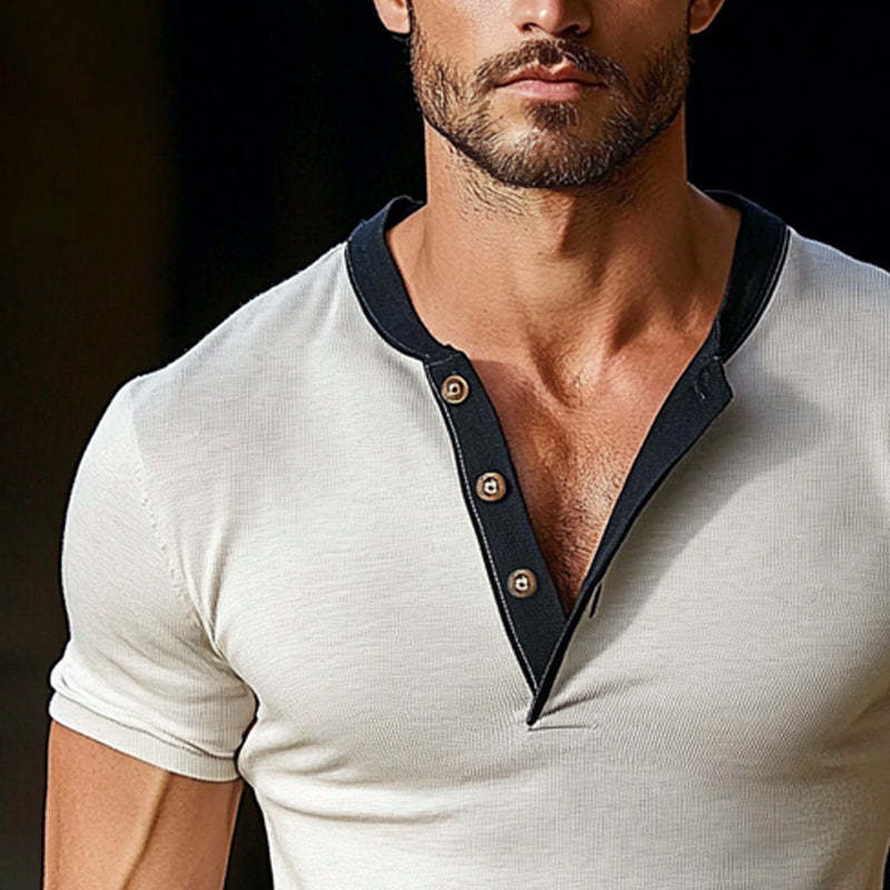 Product Name: Men's Contrast Color Short Sleeve Henley Neck T-Shirt