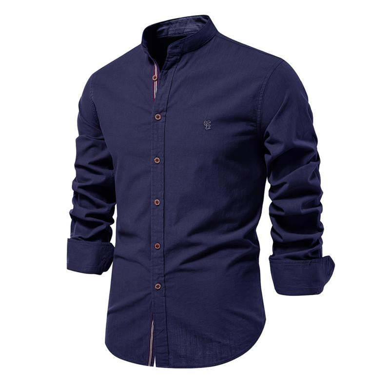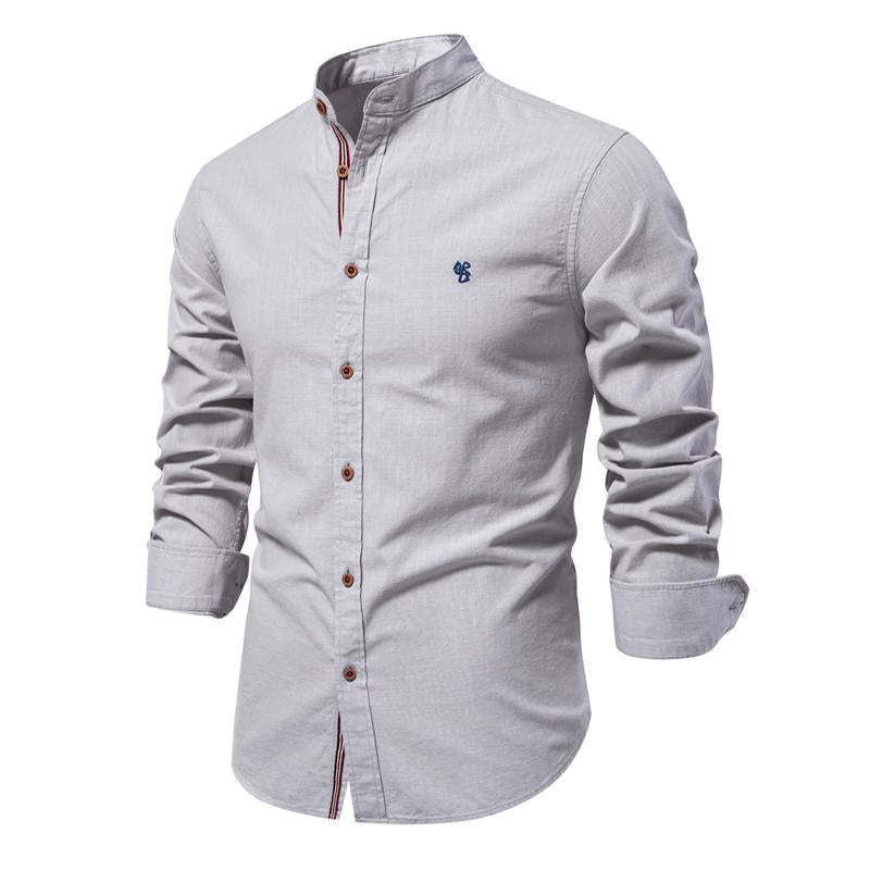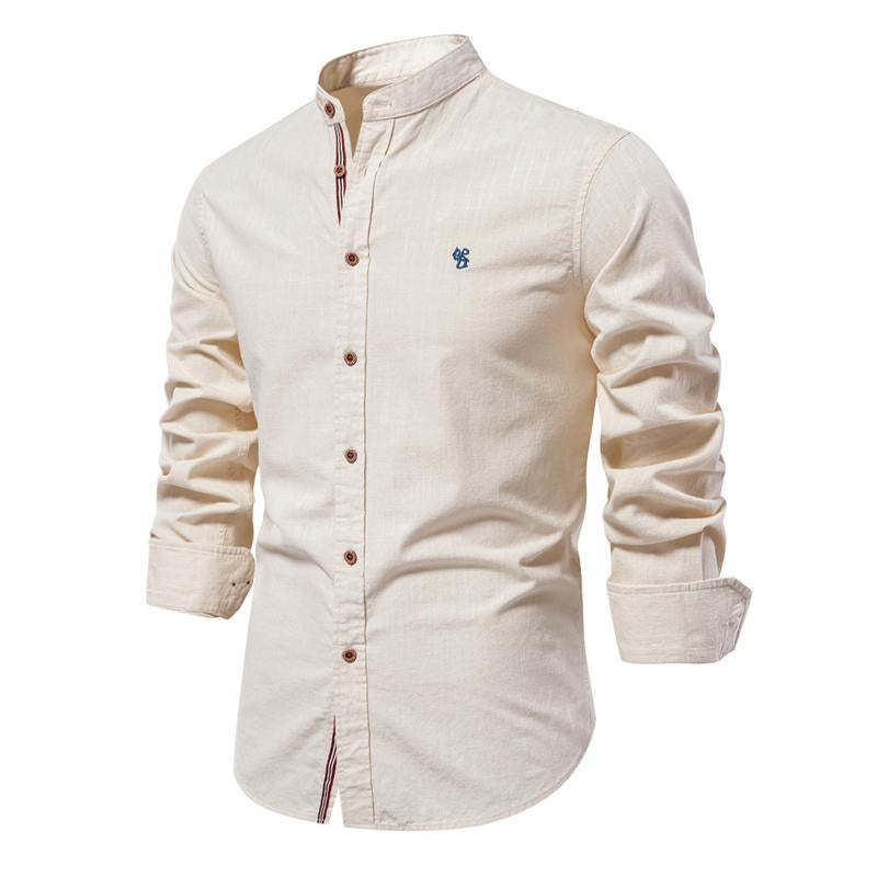 Men's Cotton and Linen Casual Solid Color Long-Sleeved Shirt