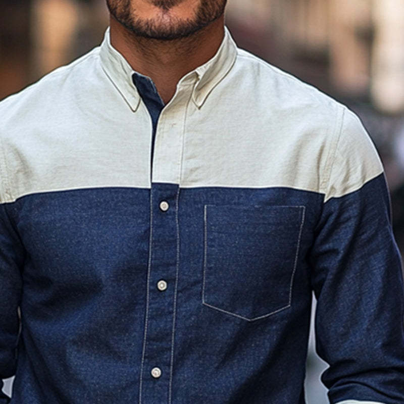 The Men's Cotton And Linen Contrast Stitching Basic Long-Sleeved Shirt is a sophisticated wardrobe staple that effortlessly marries classic design with contemporary flair. Perfect for navigating the transitional seasons and beyond, this shirt is constructed from a premium blend of cotton and linen, providing both comfort and style. The subtle yet distinctive contrast stitching adds a modern twist to the shirt's timeless silhouette, ensuring that it stands out while remaining versatile. Whether you're dressing for a business casual event or a weekend outing, this shirt offers a refined look with every wear.