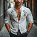 Description: Introducing our exquisite Men's Cotton and Linen Embroidered Shirt - a perfect blend of comfort, style, and craftsmanship. This sophisticated shirt offers a refined casual look that seamlessly transitions from daytime casual to evening elegance.