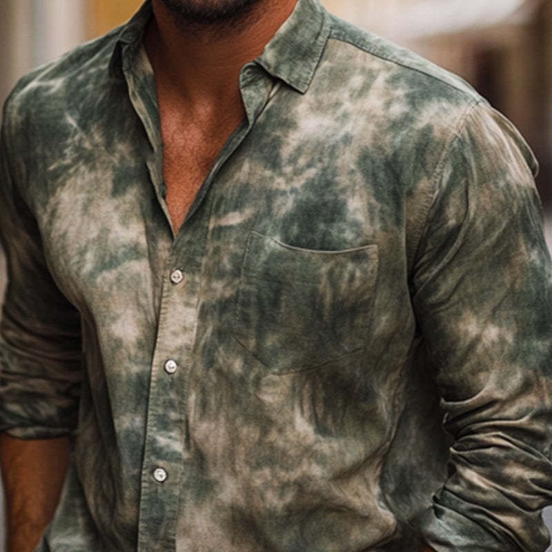 The Men's Dark Green Mottled Print Casual Long Sleeve Shirt is not just a garment but a sophisticated expression of style and elegance. Designed for versatility and comfort, it's perfect for those looking to infuse their everyday attire with a touch of elegance without compromising on comfort.