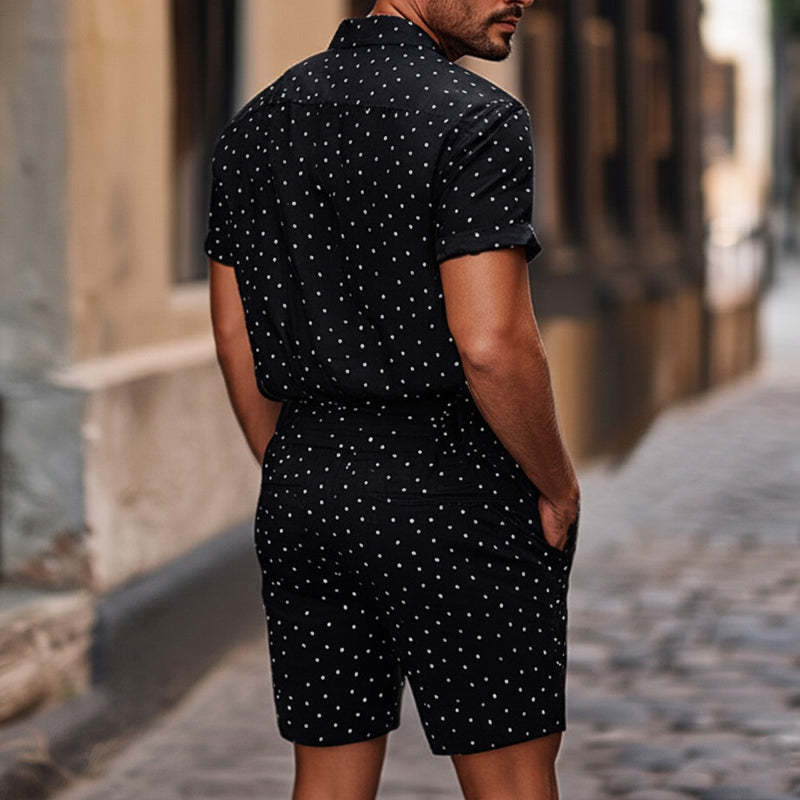 Embrace the fusion of style and leisure with the Men's Diamond Dot Lapel Knitted Casual Short Sleeve Shorts Set. Perfect for creating a seamless, stylish look with minimal effort, it's an ideal choice for those looking to make a statement while enjoying casual comfort.