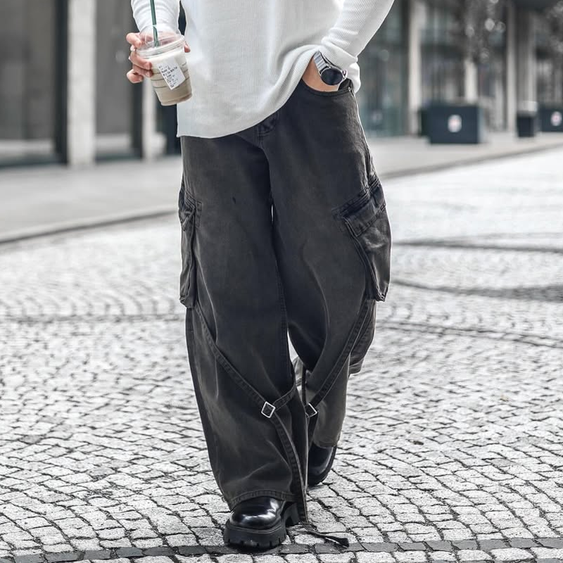 Product Name: Men's Fashion Washed Loose Multi-pocket Jeans