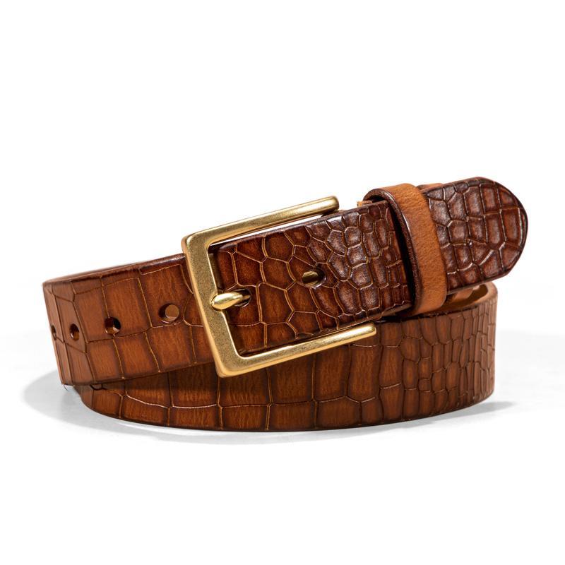 Whether you're dressing up for a business meeting or keeping it casual for a weekend outing, the Men's First-layer Genuine Leather Pure Copper Bronze Buckle Cowhide Leather Belt adds a refined finishing touch to any ensemble. Invest in this timeless accessory for an elegant, polished look!