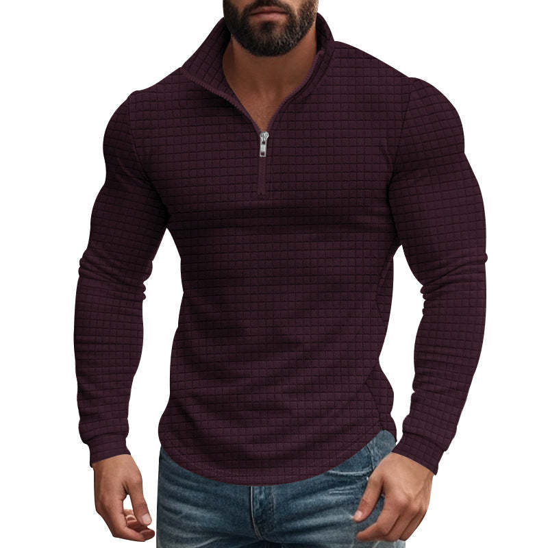 Upgrade your casual collection with the Men's Half-zip Small Square Stand Collar Long Sleeve T-shirt. Featuring a modern small square pattern and a sleek half-zip stand collar, this T-shirt offers a blend of contemporary style and comfort. The long sleeves and lightweight fabric make it perfect for layering or wearing on its own, ideal for both relaxed and smart-casual looks.