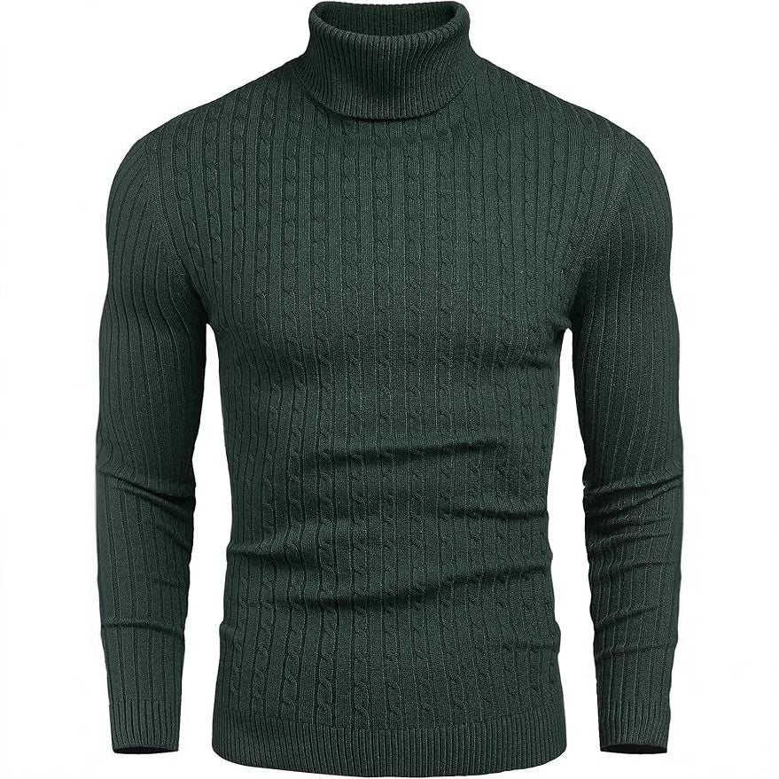 • Design Elements: Vertical cable knit pattern, ribbed cuffs and hem, high neck design