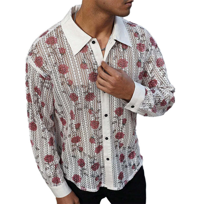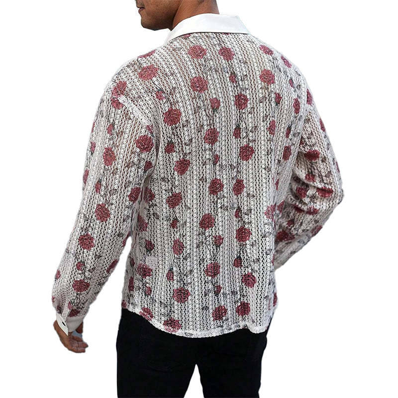 Product Name: Men's Knitted Rose Jacquard Long Sleeve Shirt