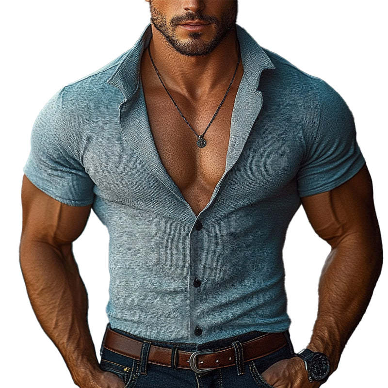 Elevate your casual wardrobe with the Men's Lapel Knit Short Sleeve Shirt – the perfect combination of style, comfort, and versatility for every occasion!
