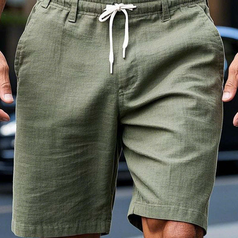 Enhance your summer wardrobe with our Men's Light Army Green Solid Color Breathable Casual Shorts. These versatile shorts are crafted from linen, offering exceptional breathability and comfort for warm weather. The sleek design includes an elastic waistband with an adjustable drawstring, ensuring a perfect fit every time. With a stylish and relaxed fit, these shorts are perfect for beach activities, outdoor adventures, or casual outings.