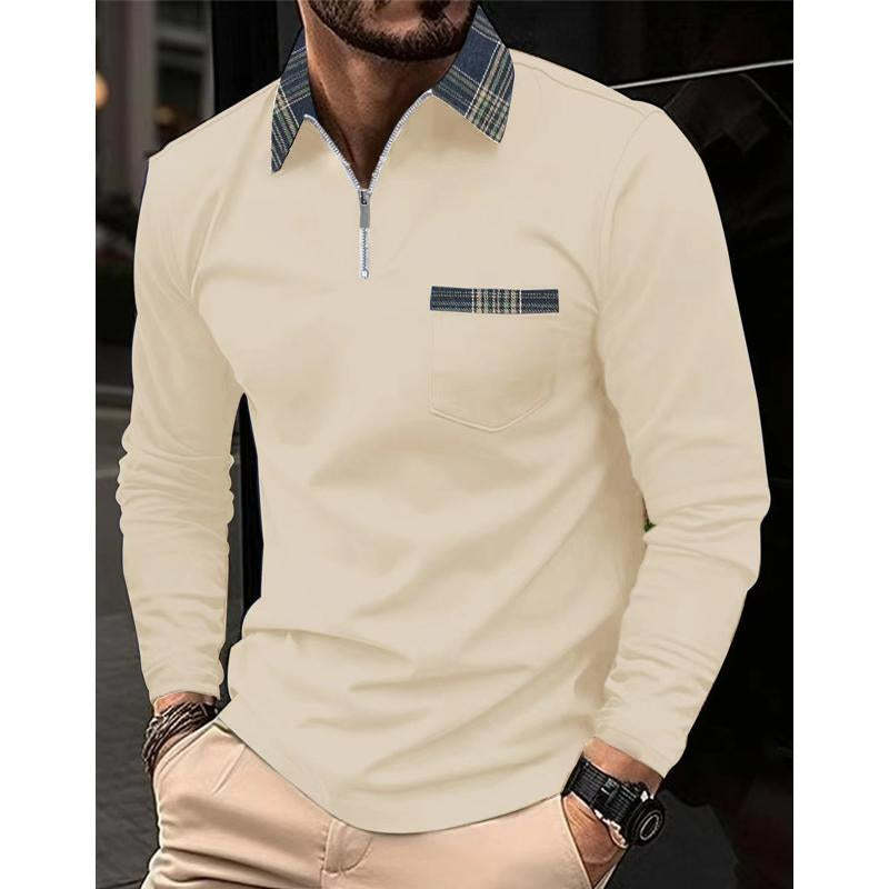 The Men's Plaid Printed Stitching Zipper Lapel Pocket Long Sleeve Polo Shirt is a modern take on the classic polo. With its unique plaid print, zipper lapel, and practical pocket, this shirt offers both style and functionality for a variety of occasions. Designed to be versatile and comfortable, it is perfect for men seeking an updated polo that combines casual ease with a polished look.