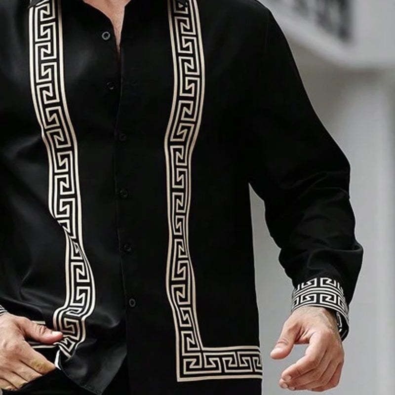 The Men's Printed Lapel Long Sleeve Shirt is the embodiment of style and practicality. Its distinctive print and well-crafted design make it a versatile addition to your wardrobe. Whether dressing up for an event or down for a casual outing, this shirt offers comfort and elegance that will make a statement wherever you go.