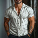 Elevate your summer wardrobe with the Men's Printed Lapel Pocket Short Sleeve Shirt – a perfect blend of bold style and casual comfort!