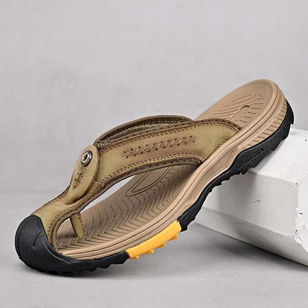 Whether you're going on vacation or going to the beach, you can wear these comfortable flip-flops. These slippers have an anti-collision toe cap that effectively protects your toes. A sturdy rubber outsole provides great durability.