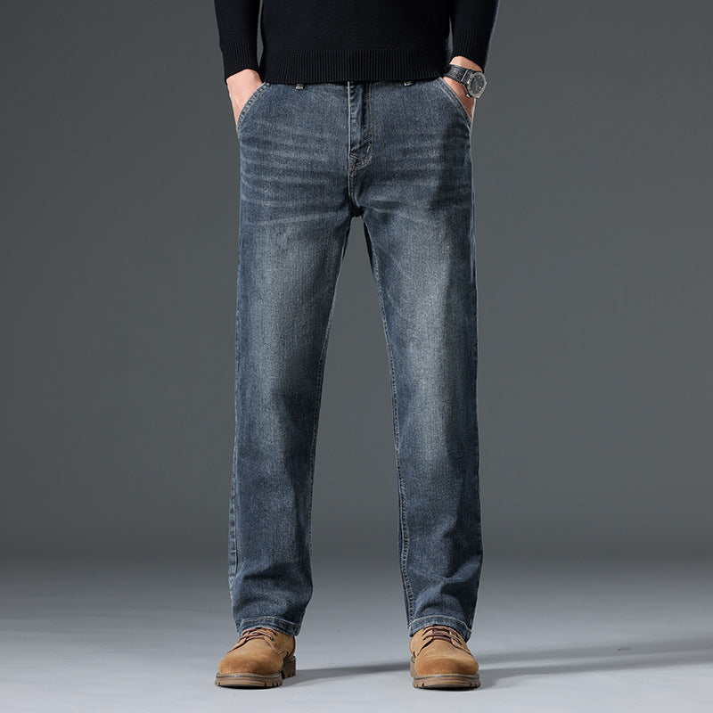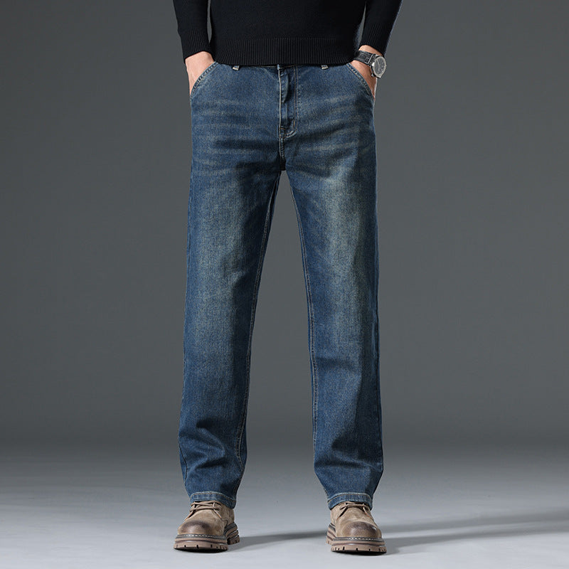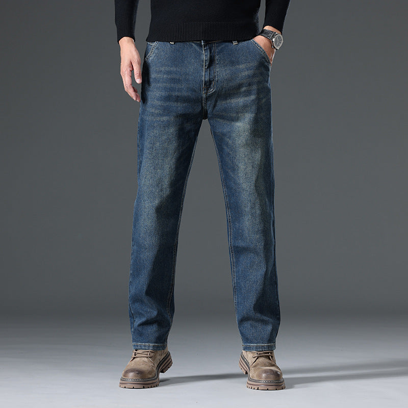 • Design Elements: Classic five-pocket style, straight leg cut, subtle fading details