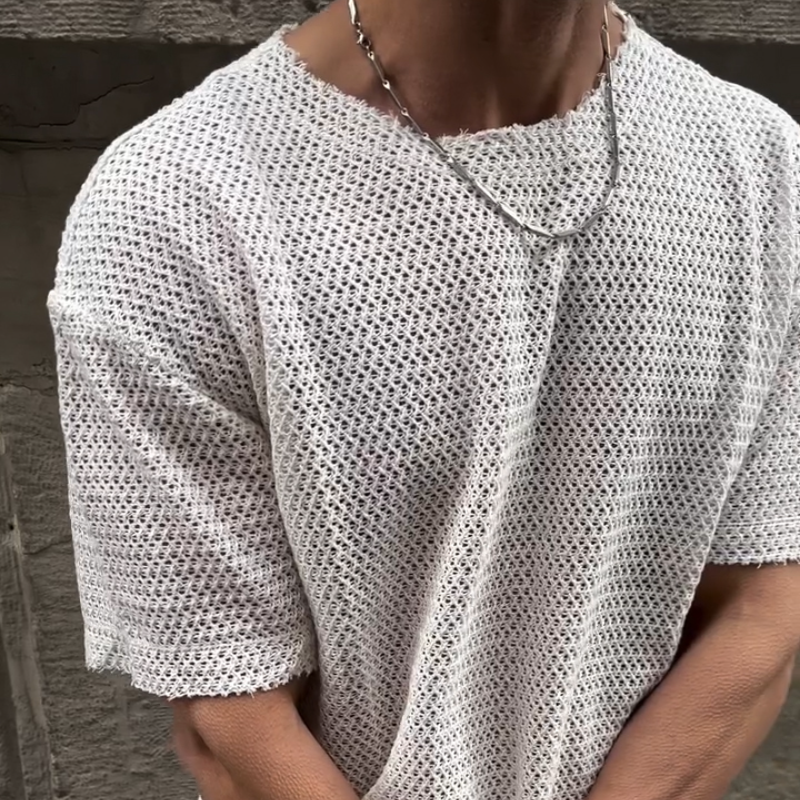 Product Name: Men's Retro Casual Hollow Refreshing Round Neck Knitted Short Sleeve T-shirt